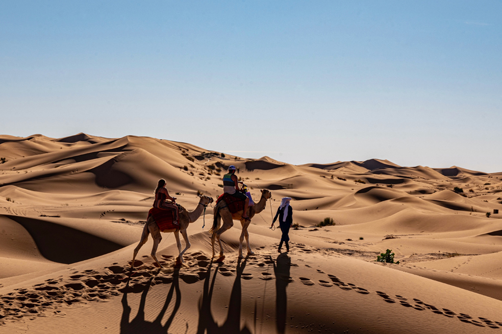 • Al llegar, cambia el 4×4 por camellos para una emocionante travesía a través de las dunas del desierto.