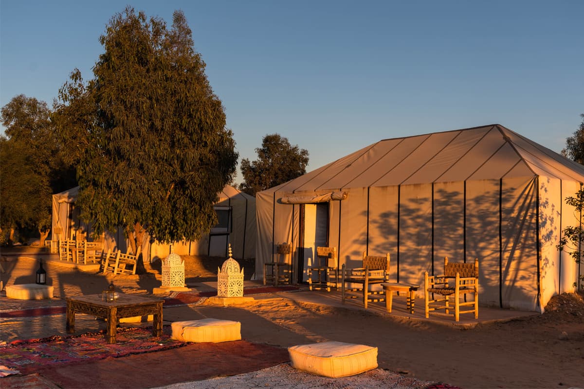 Después del desayuno, realizaremos una caminata por las impresionantes Gargantas del Todra. Luego, nos reuniremos para continuar el viaje hacia Erfoud, pasando por varios pueblos bereberes como Tinjdad y Touroug, donde haremos una parada para almorzar. Más adelante, llegaremos a Erfoud, conocida como la capital del mármol y los fósiles en Marruecos. Continuaremos nuestro trayecto hacia las majestuosas dunas de Merzouga, en Erg Chebbi, las más altas de Marruecos. Tras un breve descanso con té, sobre las 16:00, nos prepararemos para montar en dromedario y nos dirigiremos hacia las dunas para disfrutar de la puesta de sol. Pasaremos la noche en un campamento bereber, ubicado a aproximadamente una hora y media de las grandes dunas, en pleno desierto. Cena y alojamiento en una jaima bereber bajo las miles de estrellas que brillan en el cielo.